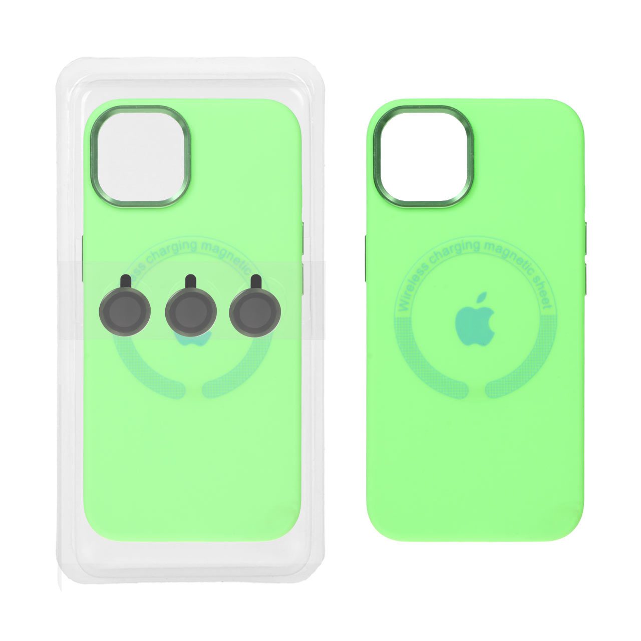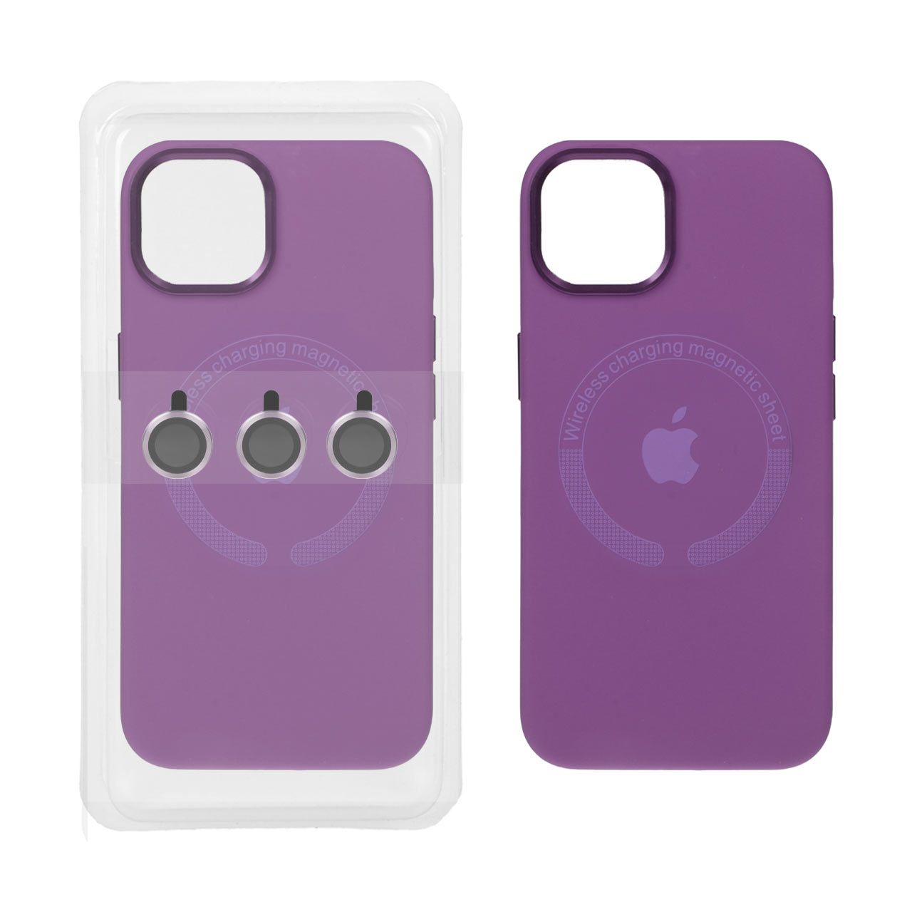 قاب سیلیکونی اورجینال Magsafe با ست محافظ لنز رینگی Apple iPhone 13 / iPhone 14