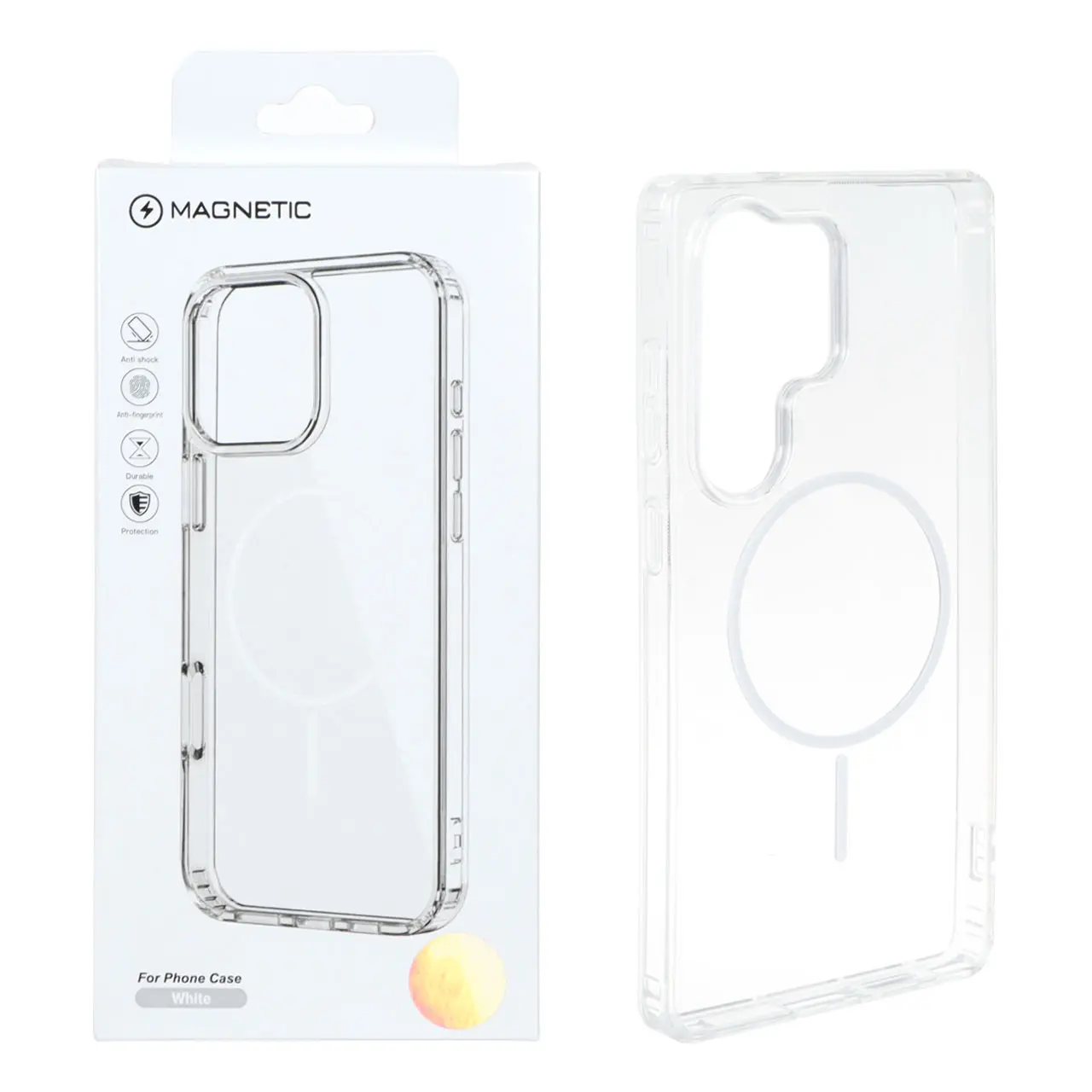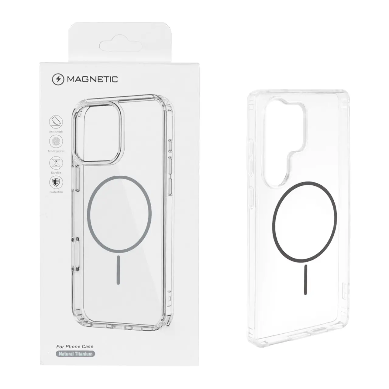 کاور Magnetic دور ژلهای MagSafe سامسونگ مدل Galaxy S25 Ultra با طراحی شفاف و حلقه مگسیف، محافظتی کامل در برابر ضربه و خطوخش فراهم میکند و با شارژرهای بیسیم سازگار است.